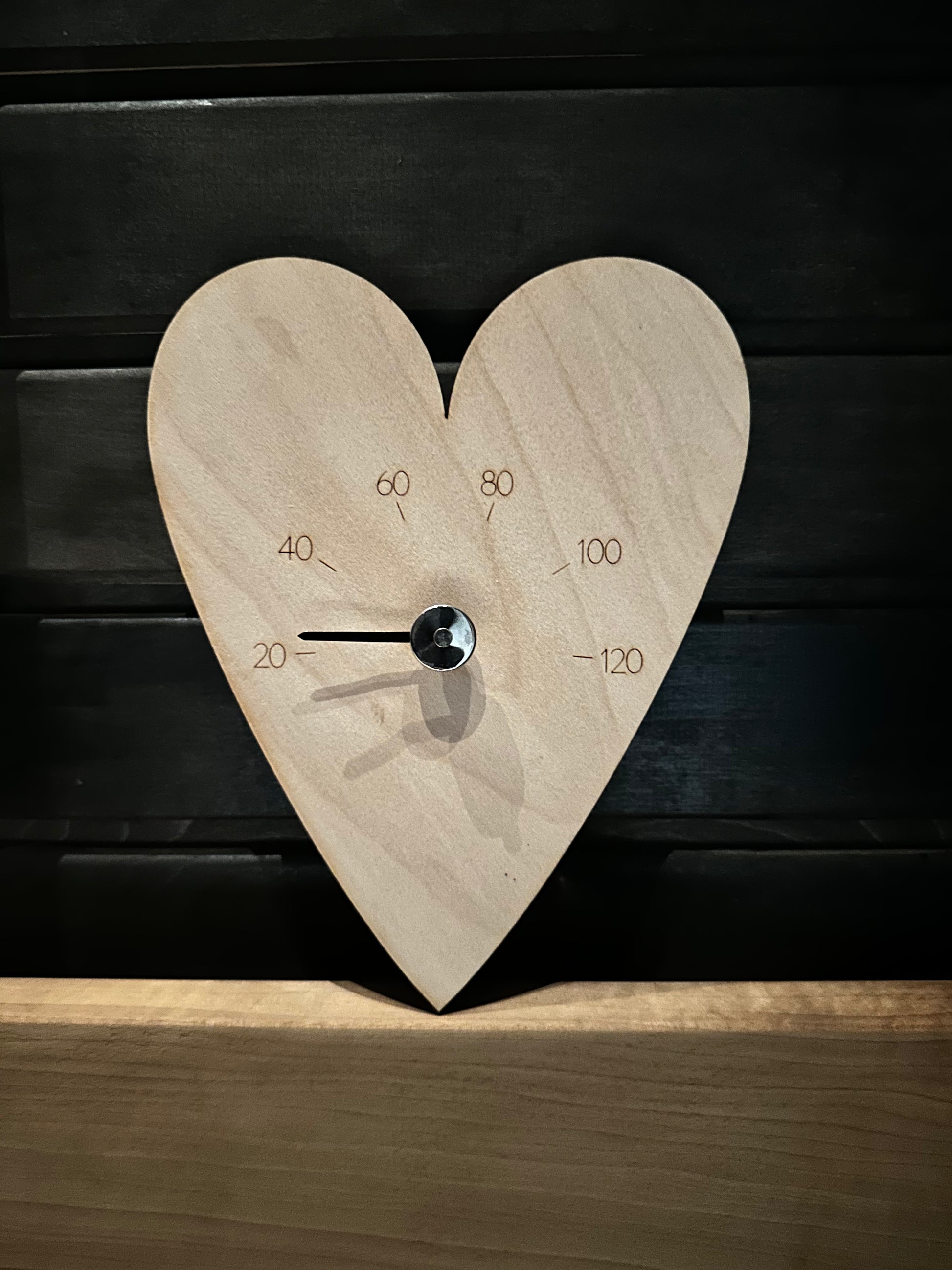 Koivuvanerinen saunamittari sydämellisiin löylyihin